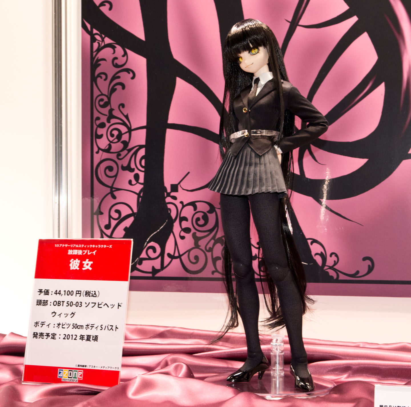 あとは放課後プレイから彼女です。ヘッドはオビツが製作中のツリ目な03ヘッドです。そういえば、以前に発売した地獄少女もMIZUKIヘッドを使っていましたね。ただ、原作絵はツリ目というよりジト目なんで、これはどうなんだろうとは思いますが・・・。こちらも夏予定で定価44000円。他の版権ドールより安めなのは、ヘッドがオリジナルでなくて流用だからでしょうかね。