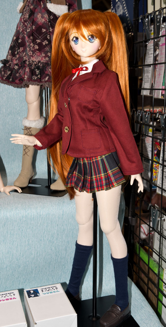 あとの3つは全部キャラクタードールで、1つがシュタインズゲートの助手こと、牧瀬紅莉栖です。今年の夏発売予定で、定価52500円。遠目にはかなり雰囲気を掴んでいる感じでよいのですが、ちょっと寄って見てみると、なかなかちょっと難しい感じが・・・。鼻周辺の造形が結構怪しいのと、メイクがちょっと雑な気がします。huke絵で目は一番の特徴ですし、もうちょっと気合い入れて欲しいなぁ。