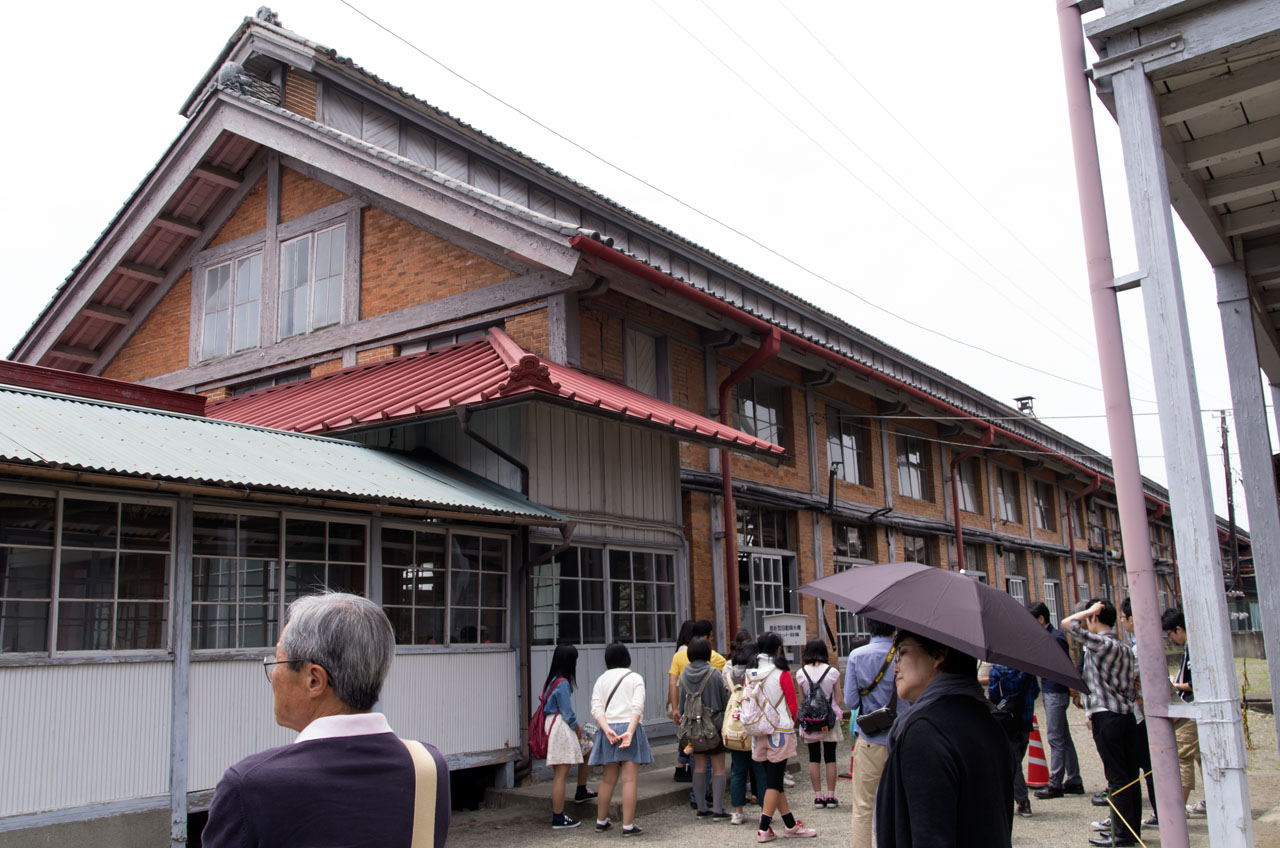 無料の施設案内のサービスがありますので、グループにわかれて案内員の方についていきつつ見物。今回は、運悪く製糸場が補修工事に入っていたため、本来回れるところの半分ぐらいしか回れなかったのが残念ではありますが・・・。