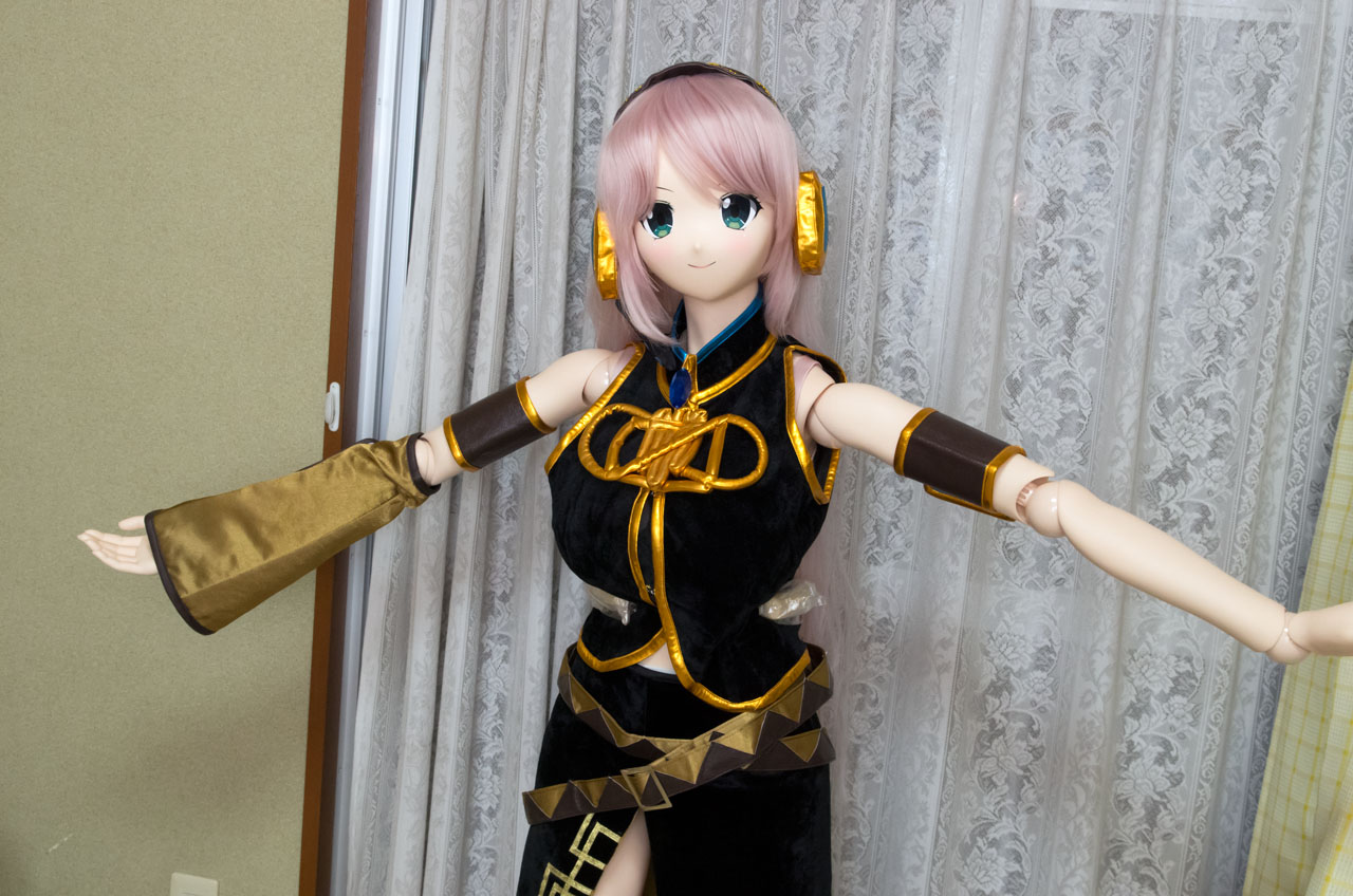 手持ちの服で巡音ルカ服でも着せてみました。サイズSであれば大体問題ないですが、もっともう少し小さい方がいいとは思います。なおバストが足りないので(ぉ、パッドを入れてます。
