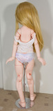 このドールですが、一般的なソフビの大型ドールと異なりキューピーちゃんみたいな外骨格のドールのようで、内部骨格がなく外皮で直接間接などを作ってます。そのためか、80cmという大型ながら無塗装のヘッドつき素体で税込み三万円で買えるというリーズナブルな大型ドールです。なお、塗装ヘッド+アイつきでも4万ぐらいで購入可能です。今回はメイクなども自分でやってみたかったので無塗装ヘッドと素体一式とアイとウィッグだけ買ってきました。