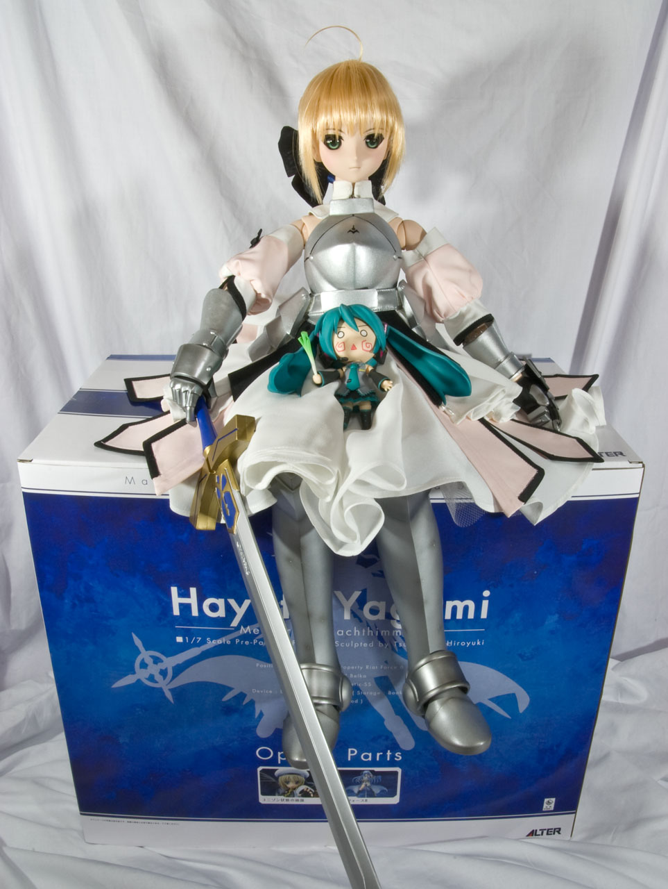 ところで、「この手のドールって、どんぐらいでかいの?」という人もいそうなので、比較写真を1枚w 巨大箱のはやての箱とねんどろミクと共に撮影です。はっきり言ってでかいです。